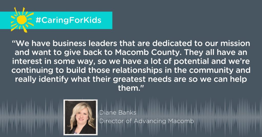 Advancing Macomb’s Diane Banks joined host Larry Burns of The Children’s Foundation on the October 26, 2021 episode of Caring for Kids on WJR Radio. The show highlights individuals and organizations who are addressing issues and leading efforts that have a significant effect on the health and wellness of children.