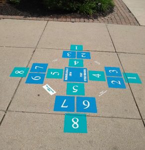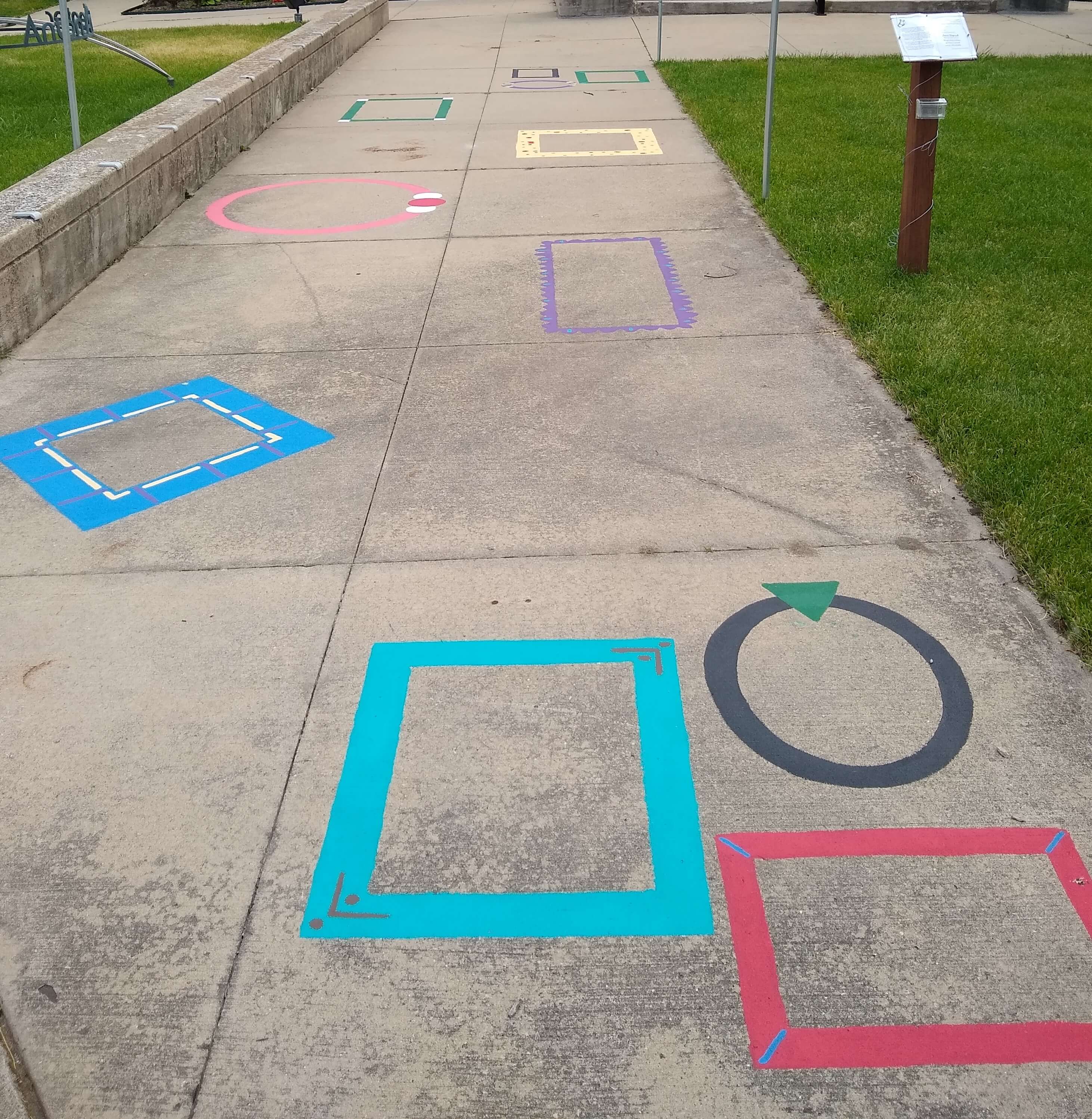 The two smaller installations brought together a group of volunteers through Advancing Macomb and the Anton Art Center to create a compass shaped hopscotch at the Macomb Family YMCA and a variety of painted picture frames on the sidewalkin front of the Anton Art Center. Both locations encourage interaction from the community. A quick game of hopscotch on the way in or out of the YMCA. Creating chalk art masterpieces in the frames at the Anton.